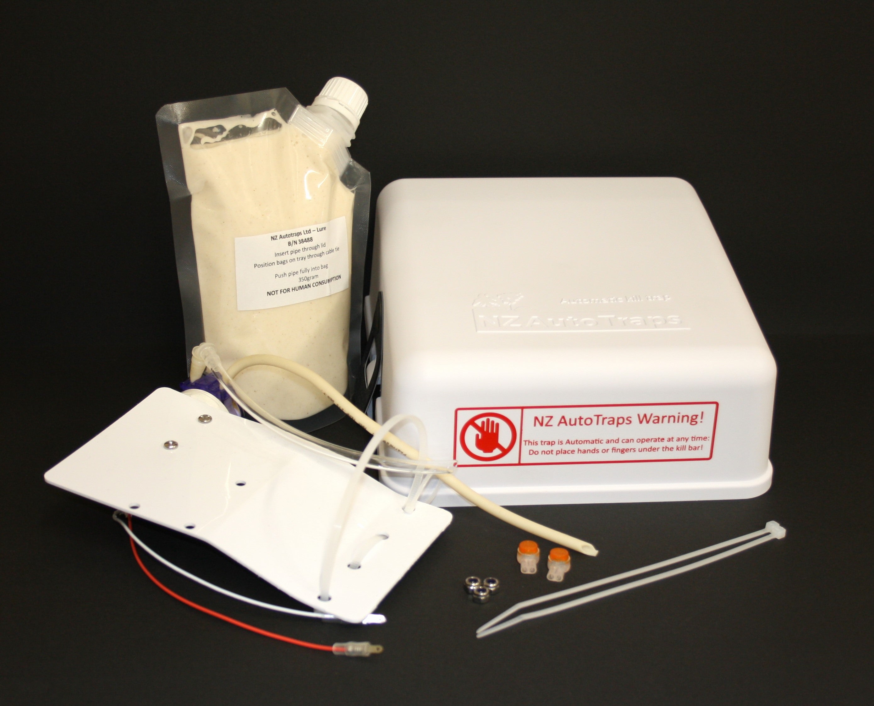 Care should be taken when installing and servicing these traps. Although the trap default is to deactivate during the day, the trap should be manually triggered/set off and battery removed when handling. At no time should hands be placed inside the trap body